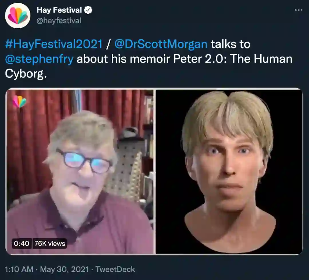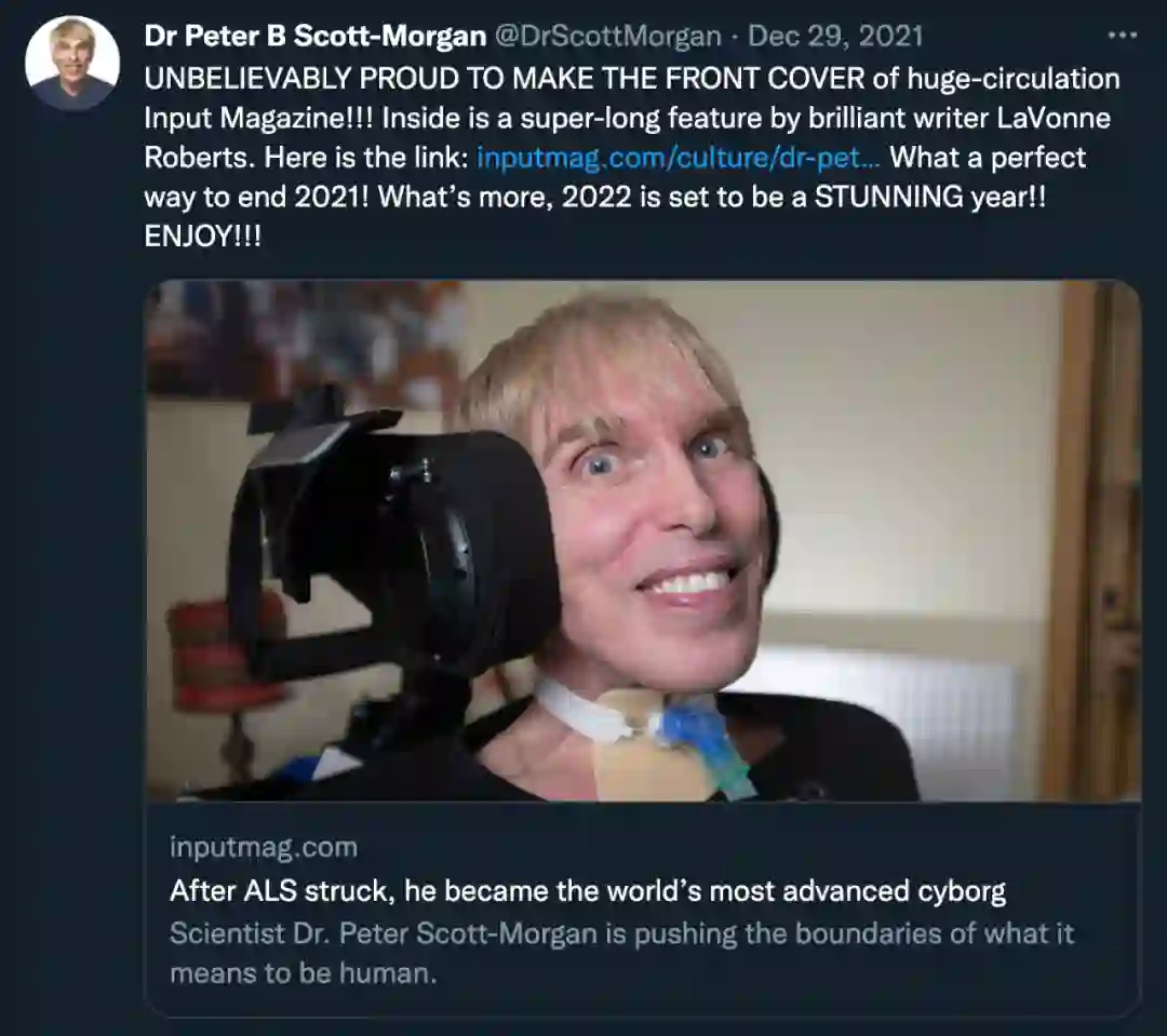 自 2020 年英国黄金时段 Channel 4 纪录片「Peter: The Human Cyborg」及其后续回忆录「Peter 2.0」上映以来,Scott-Morgan 一直在英国享有盛誉。