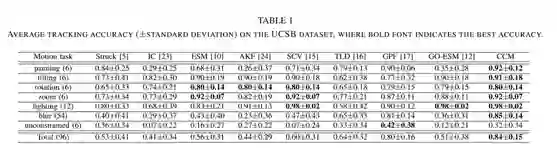 对应于每个视频类别的平均跟踪精度汇总在表I(UCSB)和II(TMT)中,如下: