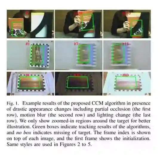 给定目标的初始图像或位置,新方法(即CCM)自动从视频中跟踪定位目标所在位置。