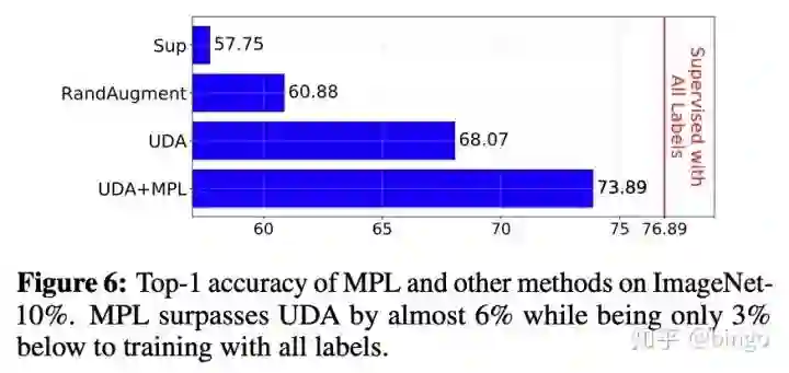 同时,因为元学习算法涉及到梯度的梯度,计算量通常会很大,不适合大规模网络和模型的学习,作者提出了一个简化版本的MPL算法,如图4. 首先学习一个大规模的Teacher网络用做基本网络,outer的meta更新的时候只更新一个小规模的Teacher网络,这样既保证了一定的性能,又大大的减少了计算量。