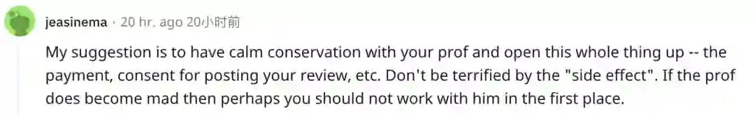 我的建议是,你要与教授就整件事情进行一次冷静的谈话,包括报酬、同意发布自己评审内容等等,千万不要被「副作用」吓到。