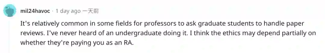 有网友认为,在某些领域,导师要求研究生处理论文综述是相对常见的,自己还从来没有听说过让一个大学生这样做。按道理讲,他们应该按研究助理给你一定的报酬。