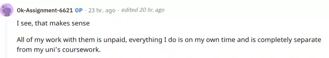 作者也是很赞同这一观点,他表示自己和导师们一起做的所有工作都是没有报酬的。
