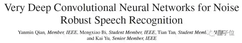钱彦旻团队首先在2016年的研究证明了极深卷积神经网络(VDCNN),具有优越的自主抗噪鲁棒性。