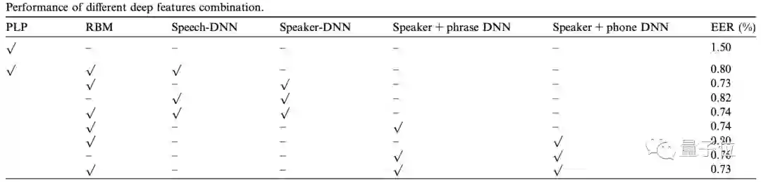 与传统的短时谱特征(例如MFCC、PLP)不同的是,钱彦旻团队采用了各种深度模型隐含层的输出作为深度特征,进行文本相关“说话人”验证。