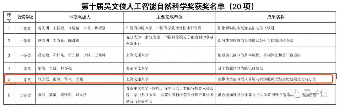 而在人工智能自然科学奖的5个一等奖中,唯一一项语音相关的奖项,花落上海交通大学。这也是语音领域的研究成果第一次获得吴文俊人工智能科学技术奖的一等奖。