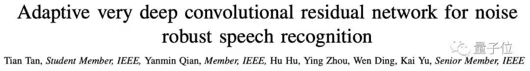 例如2016年和2018年发表在顶刊IEEE TASLP上的 Very Deep Convolutional Neural Networks for Noise Robust Speech Recognition 和Adaptive Very Deep Convolutional Residual Network for Noise Robust Speech Recognition,便让语音识别在噪声环境下的也具有较好的鲁棒性。