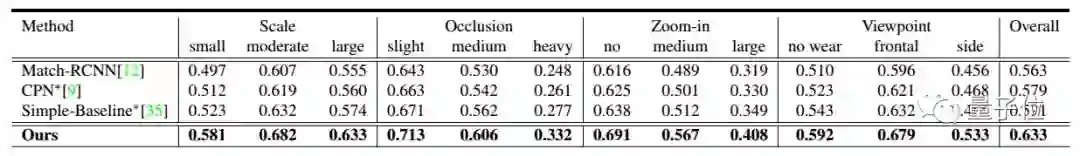 在服装关键点估计部分,阿里研究人员在目前复杂度最高的Deepfashion2数据集上进行了评测,与现有Match-RCNN, CPN, Simple-Baseline等方法相比,服装关键点估计模型在各个子集上都取得了最高的mAP结果: