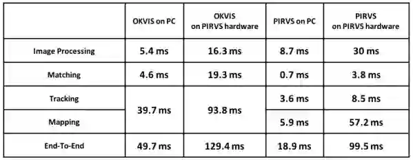 表2 在PIRVS硬件上的时间比较。