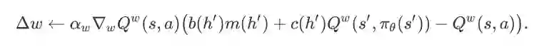 我们基于确定性策略梯度算法(deterministic policy gradient,DPG)[8] 提出学习 Search Session MDP 最优排序策略的算法。我们并没有基于更一般的随机策略梯度方法,因为计算随机策略的梯度通常需要更多样本,且这一点在高维动作空间问题中更为明显。然而,在 Search Session MDP 中,对状态动作值函数 进行估计面临两个难点。首先,Agent 在每个状态上所能获得的即时奖赏具有很大的方差。从奖赏函数的定义可以看到,任意状态动作对(s, a)对应的即时奖赏要么为 0,要么为 (s, a)对应的 item page history 的成交价格期望 m(h),而 m(h)的值通常比 0 大很多。对