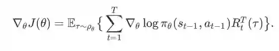 之间的奖赏之和。此梯度更新公式是著名的REINFORCE 算法 [6] 的核心。Sutton 等人提出的策略梯度定理(policy gradient theorem)[7] 提供了更加一般的策略梯度更新方法。一般地,