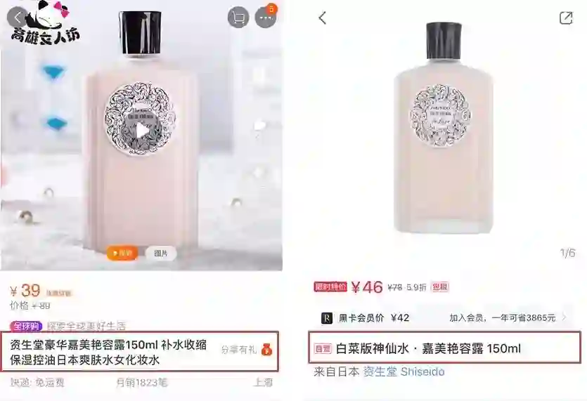 右边是小红书的文案“白菜版的神仙水·嘉美艳容露”,作为直男虽然我并清楚这个嘉美艳容露到底是干什么的,它到底在化妆品界有多牛逼。