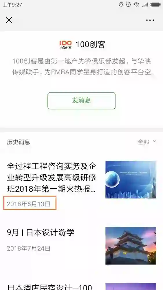 100创客官方微信最新一篇文章的更新时间是2018年8月13日