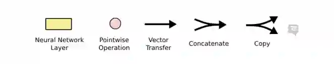 在上图中,每一条黑线传输着一整个向量,从一个节点的输出到其他节点的输入。粉红色的圆圈代表点乘操作(pointwise operations), 像向量的加法。而黄色的方框是学习到的神经网络层,合在一起的线条表示向量的连接操作,分叉的线条表示他的内容被复制到了不同的位置。
