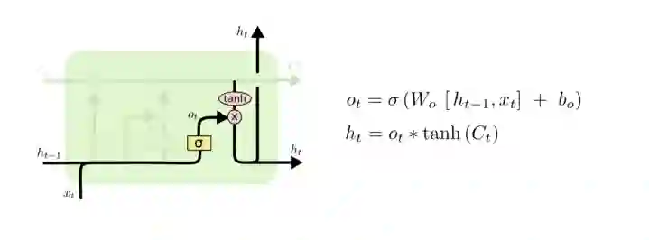 最后,我们需要决定需要输出什么,输出是基于我们的细胞状态,但是也有一个过滤后的版本。首先,我们运行sigmoid层,这层决定细胞转态哪些部分需要输出。然后,我们把细胞状态通过tanh(输出-1到1之间的值)进行处理,然后再乘上sigmoid输出。最后我们仅仅会输出我们确定输出的那部分。