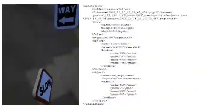 我们使用模拟器和真实场景中的图像数据来训练模型。接下来,我们使用 Unreal Engine 4 开发了自己的模拟器。模拟器会生成随机物体和随机背景,以及可在 TensorFlow 目标检测 API 中使用的 Pascal VOC 格式注解文件。