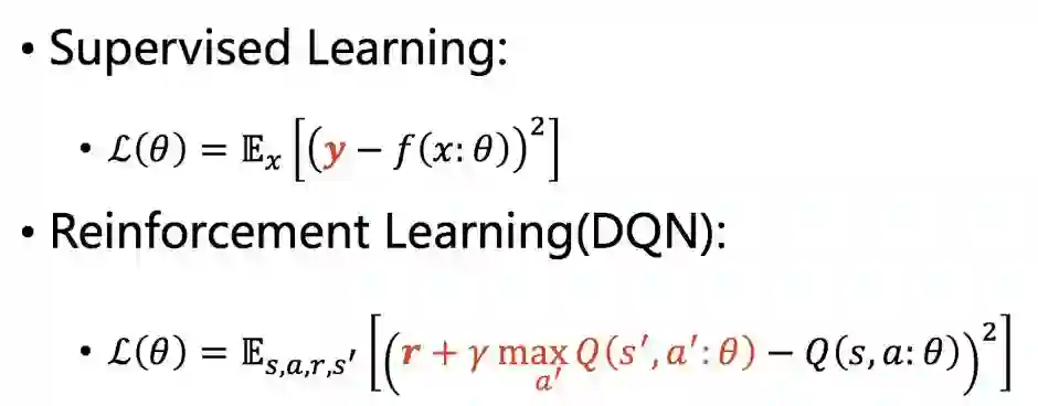 我们先比较一下增强学习(DQN)和监督学习的loss function: