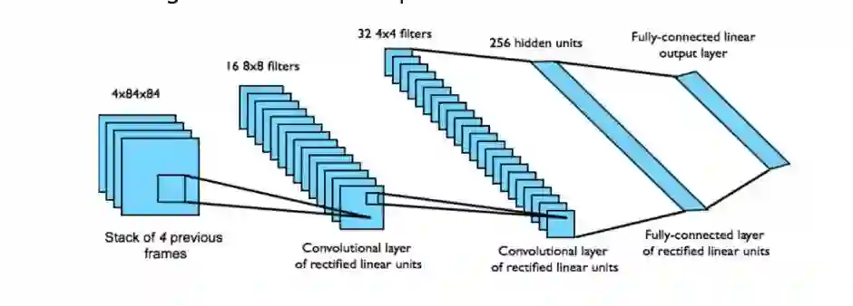 在DQN这个工作中,使用了卷积神经网络(CNN)来处理图像的输入,最后输出游戏的动作指令;成功地实现了仅根据观察游戏的屏幕输出和奖励来学会玩游戏的过程。