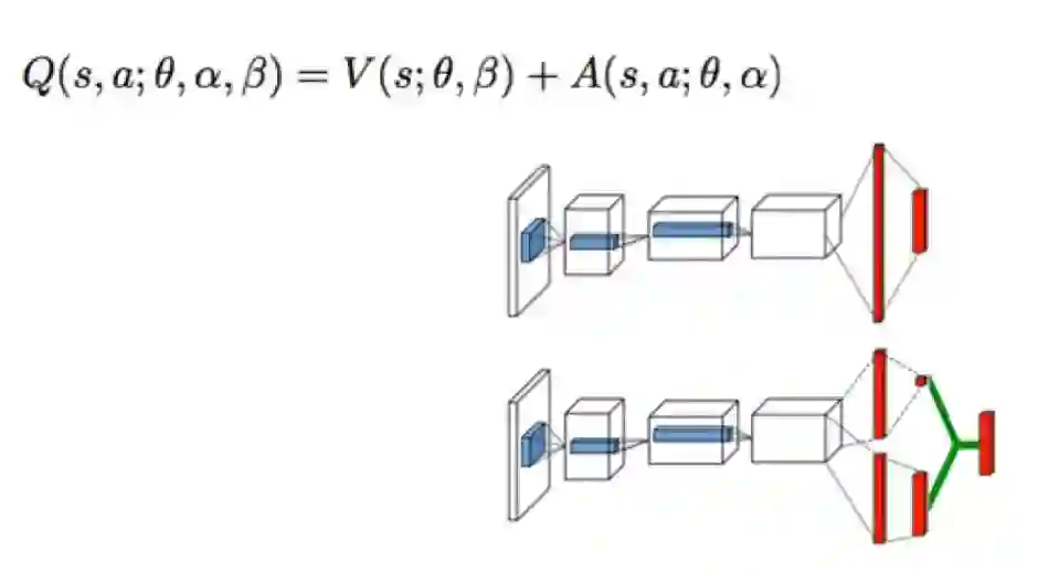 设想一下:在学习骑自行车这个任务中,假设agent所处的状态是轮胎与地面成30°角。可以想象,无论这个时候agent采取什么action,多半都会收到一个很糟糕的reward:摔倒在地面上。这里,一个直觉的推断是:在很多问题下,Q值的一大部分由输入的state决定;在此基础上,不同的action会造成小部分的差别;另外一方面,对于策略来说,Q之中仅由state决定的这部分没有什么作用,更重要的是不同action之间的差别。