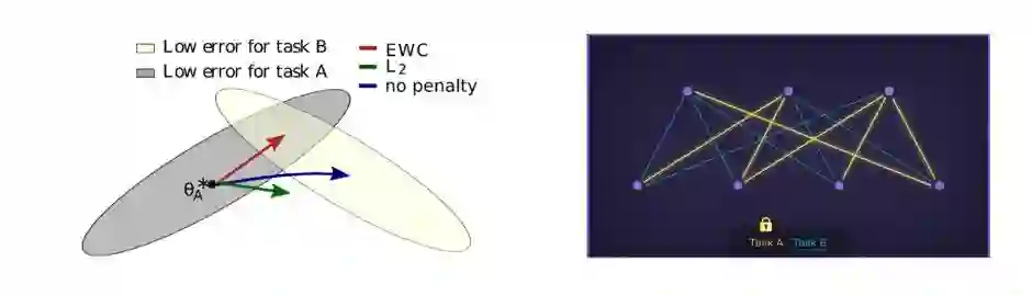 从训练的角度来讲,一个神经网络在两个task下表现好,就意味着这个网络的参数对于两个task对应的loss 都比较低。也就意味着,在训练好task A以后,在训练task B的时候,希望能保留对task A重要的参数,只改变对task A不重要的参数,来寻找能完成task B的策略。参数对task的重要程度,正好有个直接的衡量标准:即训练这个task的时候,loss对参数的梯度。这样,只要调低对task A重要的参数的学习率,就能让网络不会“忘记”task A。