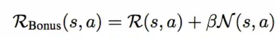 既然RL的训练过程会让agent的策略倾向于尽可能多地收集累积回报,那我们是不是可以自己构造回报函数,来指导agent的探索呢?这是一种比较通用的办法。即在agent收到的环境reward之上,加入自己设计的intrinsic reward,指导agent趋向于这个reward所指引的方向。至于如何构造这个intrinsic reward,不同的工作有不同的思路,这里仅举一个例子: