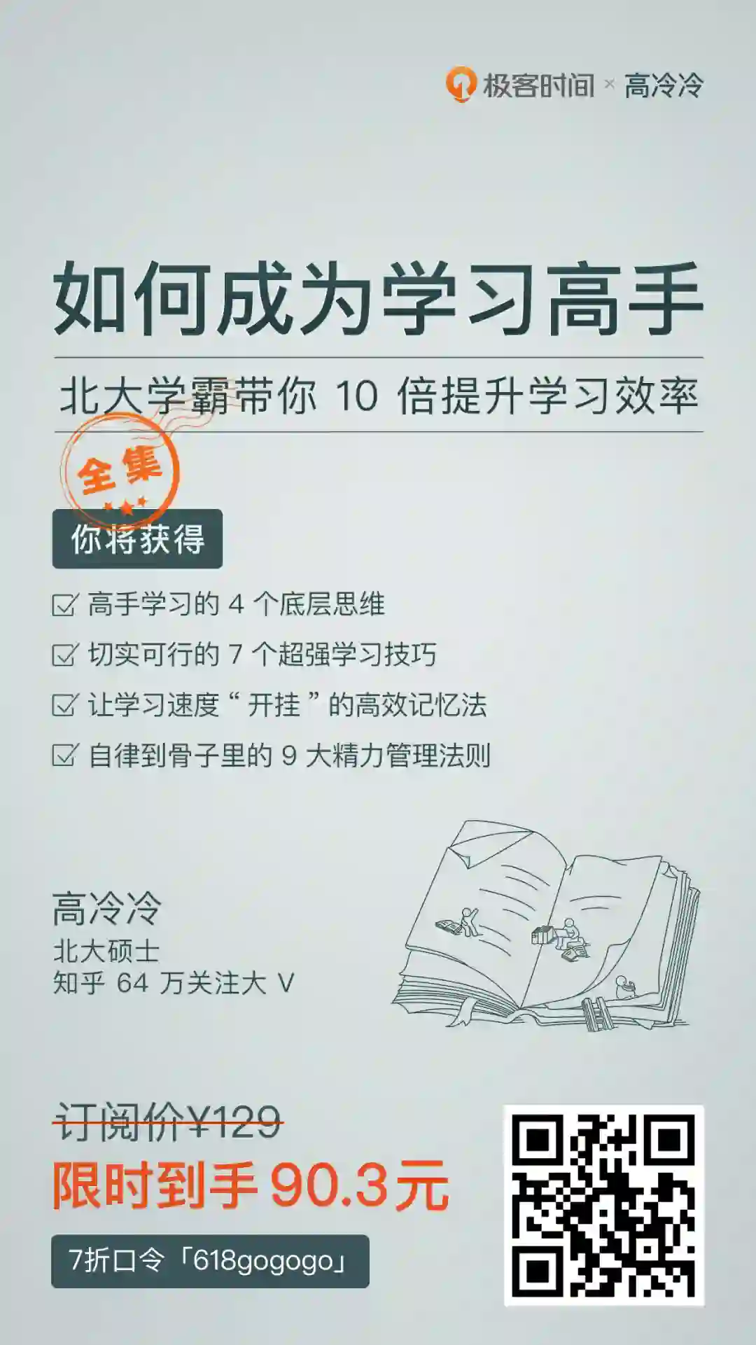 这些内容出自极客时间的专栏《如何成为学习高手》,作者高冷冷,哈工大化学本科,北大中文系硕士,知乎 64W 关注大 V 。整个专栏我花了 6 个多小时看完,不得不说,不愧是理跨文的北大学霸,没点技巧还真不行。