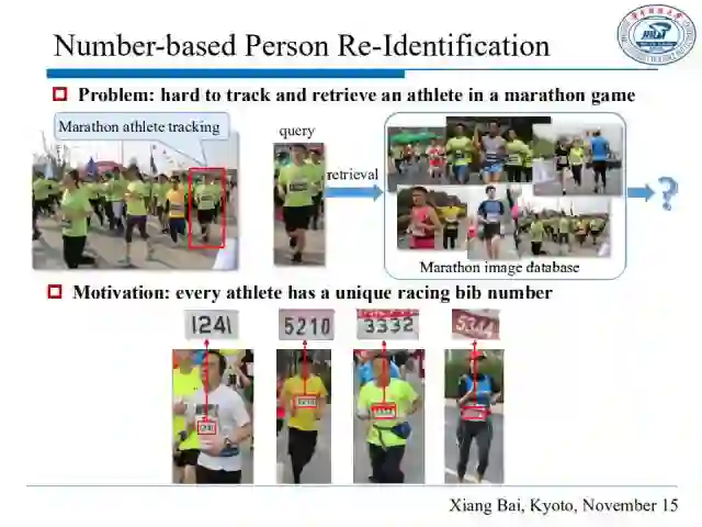 在马拉松比赛中,由于人员庞大、时间持续性长、场景复杂、服装相似等特性,使用行人重识别或者人脸识别的方法来跟踪参赛者是非常困难的,考虑到每一位选手有一个独特的编号,我们试图从场景文本检测的角度入手,根据编号进行行人的定位与跟踪。