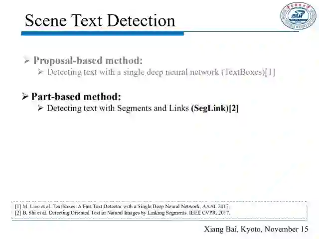 本次报告是关于场景文本理解的。众所周知,深度学习已在图像视频方面显示了巨大的能力,且在文本分析领域也取得了一些有意义的进步,我也在尝试将深度学习用于文本相关工作。