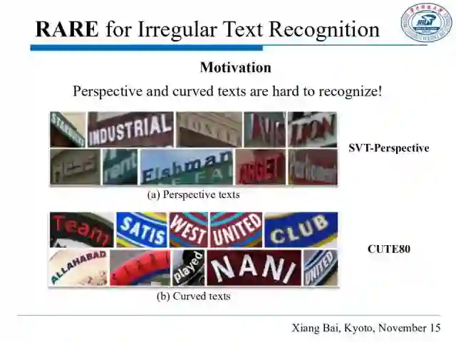 对于形状不规则的文本行,我们提出了RARE(Robust text recognizer with Automatic REctification)模型来解决。