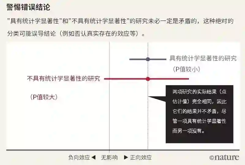 首先要声明我们反对的是什么:我们不能仅仅因为P值大于某个阈值(通常为0.05),或因为置信区间涵盖了0,而得出“无差异”或“无关联”的结论。我们也不能仅仅因为一项研究结果具有统计学显著性而另一项没有,便判定两项研究的结果存在冲突。 这些误解不仅会浪费研究资源,有时甚至会误导决策。