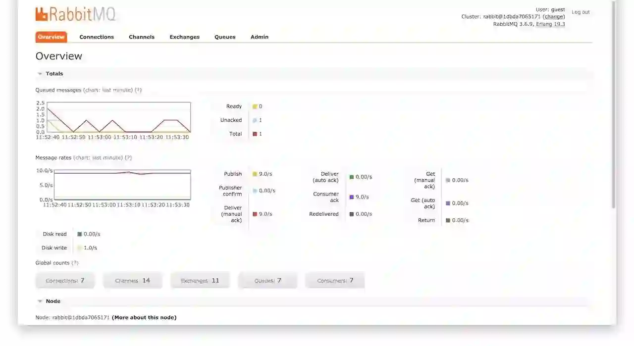 Docker 启动访问 http://localhost:15673/ 默认账号 guest,密码 guest(本地 rabbit 管理系统默认端口15672)