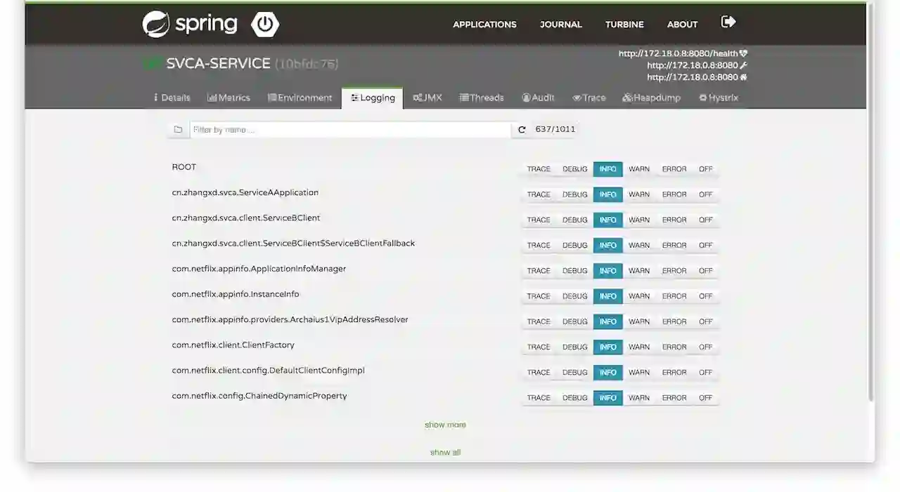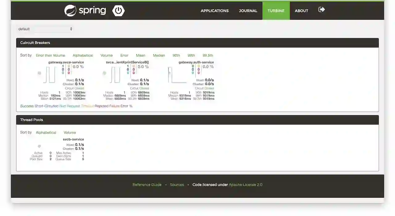 Turbine - Turbine 是聚合服务器发送事件流数据的一个工具,用来监控集群下 hystrix 的 metrics 情况。