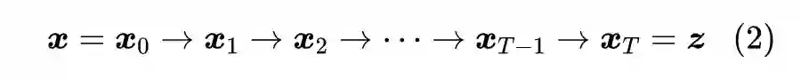 如今生成扩散模型的大火,则是始于 2020 年所提出的 DDPM [7](Denoising Diffusion Probabilistic Model),虽然也用了“扩散模型”这个名字,但事实上除了采样过程的形式有一定的相似之外,DDPM 与传统基于朗之万方程采样的扩散模型可以说完全不一样,这完全是一个新的起点、新的篇章。