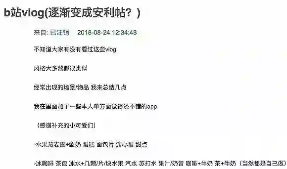 一位豆瓣网友说:如果你在B站搜索Vlog,看到的内容十有八九是有人拍自己早餐吃牛油果酸奶拌麦片。