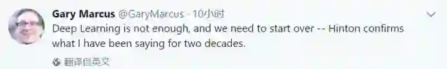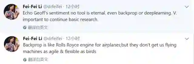 Hinton的「摈弃一切,从头再来」观点,在推特上引起了热烈反响,Pedro Domingos、李飞飞等多人纷纷转发。李飞飞评论道:「赞同 Hinton 关于没有工具是永恒的观点,甚至反向传播或者深度学习也不例外。因此,基础研究的继续异常重要。」Gary Marcus 自夸说:「深度学习并不完美,我们应该有新的开始。我二十年前就讲过这句话。」
