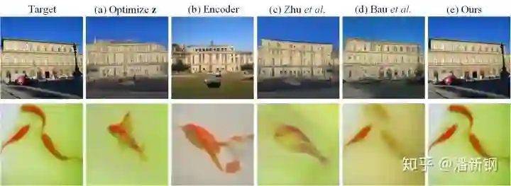 为图片距离度量例如MSE loss。然而在实践中,仅仅通过优化隐向量z 难以准确重建ImageNet这样的复杂真实图片。例如,以下(a)(b)(c)(d)为以往GAN inversion方法的重建结果: