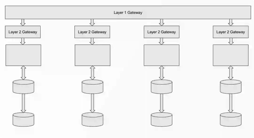 如上图就是「智能路由」模式下的架构图。网关主要分为两层,第一层负责路由请求,根据条件来判断请求应到达哪个数据中心;第二层网关则是进行流量转发。所以网关在这个模式中主要解决的问题就是给每个请求分配好「归宿」,然后进行后续的流量转发与业务处理。