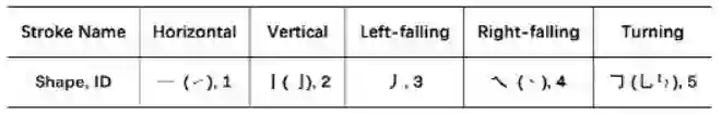 为了方便,论文提及把笔画信息数字化,用数字代表每一种笔画信息,如下图。