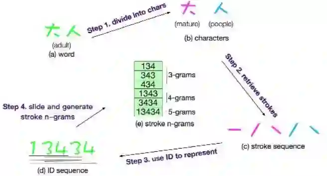 本篇论文采用笔画信息作为特征,由于每个字符包含很多的笔画,类似于一个英文单词包含很多的拉丁字母,在这个基础之上,提出了笔画的n-gram特征。这个思想来源于2016年facebook提出的论文(Enriching Word Vectors with Subword Information),目前facebook这篇论文已经被引用300多次,影响力很大,cw2vec可以称之为中文版本的fasttext。