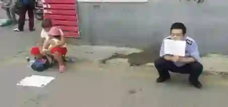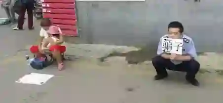 沈阳一医院保安小哥,为气跑在门口乞讨一周的女骗子,蹲在她左侧不足5米处,举一张写有“骗子”和箭头的纸牌。小哥说:她们是妇女小孩,不好直接劝说只能这样..