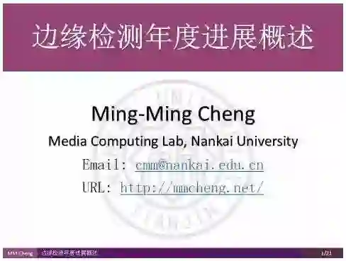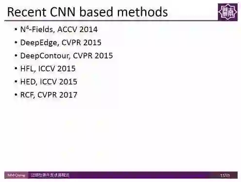 编者按:边缘检测是图像处理和计算机视觉中的基本问题,通过标识数字图像中亮度变化明显的点,来捕捉图像属性中的显著变化,包括深度上的不连续、表面方向的不连续、物质属性变化、和场景照明变化。南开大学的程明明副教授将带领大家回顾过去一年中,边缘检测领域在学术界的研究进展。文末提供报告中提到全部文章的下载地址以及程明明副教授组内工作的开源代码地址。