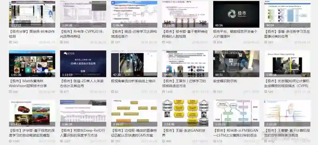 从计算机视觉(目标检测,目标跟踪,视觉slam,行人重识别,GAN,自动驾驶等) 到图像处理到机器视觉,极市邀请了学界和工业界的有经验的大牛分享了35期前沿的高质量的纯技术干货,回放视频平台涵盖国内国外(腾讯,优酷,B站,YouTube等),播放次数10w+,累积粉丝数1w+。