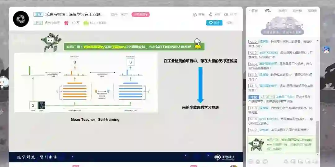 在一个小时的演讲中,马博输出了满满的干货,从基本的工业缺陷检测方法到创新的工业实践,大家听得意犹未尽。在最后的问答互动环节,小伙伴们也纷纷提出了自己对于工业检测等方面的见解与疑问,与马博在工业缺陷检测这个领域内进行了更深度的交流。