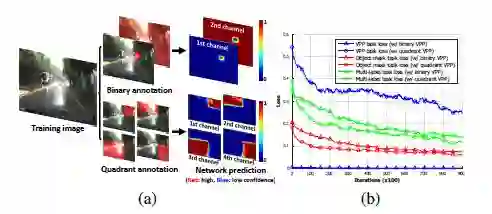 本文网络包含了四种覆盖不同上下文的任务。检测任务识别目标,包含局部上下文,而VPP任务包含全局上下文。如果这些任务在相同的训练周期一起训练,网络会受某一主要任务的严重影响。为了避免VP给网络提供冗余信息,分两个周期来训练网络,以此平衡两个任务。