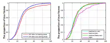 本文提出了一种统一的端到端可训练并能处理多任务的网络,它在恶劣天气条件下通过灭点引导,能同时检测并识别车道和道路标记。本文针对的是目前为止由于其挑战性并未被广泛研究的雨天和低照度的情况。本文创建了包含约20000张图像的车道和道路标记基准数据集,其中包含4种不同场景下的17类车道和道路标志:无雨,有雨,大雨和夜晚情形。实验结果表明,本文的方法在各种不同的情形下实时(20fps)达到了最高的准确性和的稳健性。数据集和VPGNet模型将公开可用。