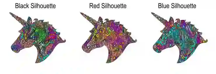另外,剪影不一定要全部都是黑色的。其实各种颜色就像种子(生成随机数的种子)一样可以生成不同种类的艺术品。我们想要把哪种颜色作为主色来选择剪影颜色(注意:黑色就像一个分界颜色——它是中性的)。