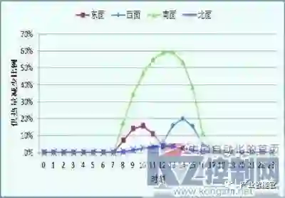 图2 典型日受太阳辐射影响建筑物各面供热量下降比例