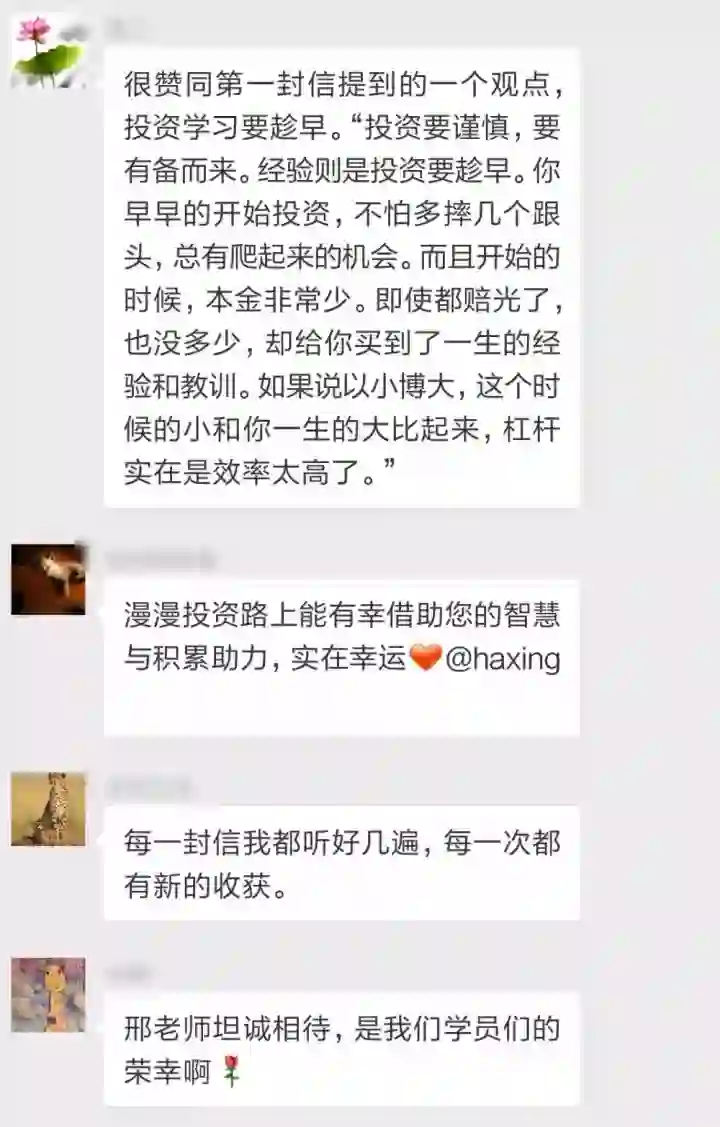 于是,在收到了给投资小白的第一封理财信之后,他们对写信的这位“坦诚相待”、“观点清晰,思维缜密”的邢老师“一见钟情”。