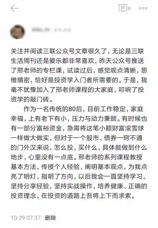 3、订阅专栏后,加入“中读・老邢的财商分享会”线上微信群,你将拥有一个私属的理财顾问,以及投身于投资理财的群友们,一起走向财富之路;(入群方法:私信中读微信服务号“@三联中读” 晒出订阅专栏截图后,邀请加入)