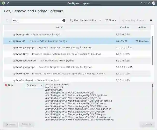 与底层命令一样,图形安装程序的名称取决于你正在运行的 Linux 发行版。相关的应用程序通常使用“软件(software)”或“包(package)”等关键字进行标记,因此请在你的启动项或菜单中搜索这些词汇,然后你将找到所需的内容。 由于开源全由用户来选择,所以如果你不喜欢你的发行版提供的图形用户界面(GUI),那么你可以选择安装替代品。 你知道该如何做到这一点。